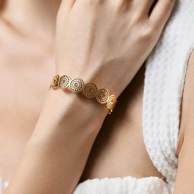 Despite its wide-brimmed look, the bracelet is lightweight and skin-friendly, ensuring all-day comfort for any occasion.