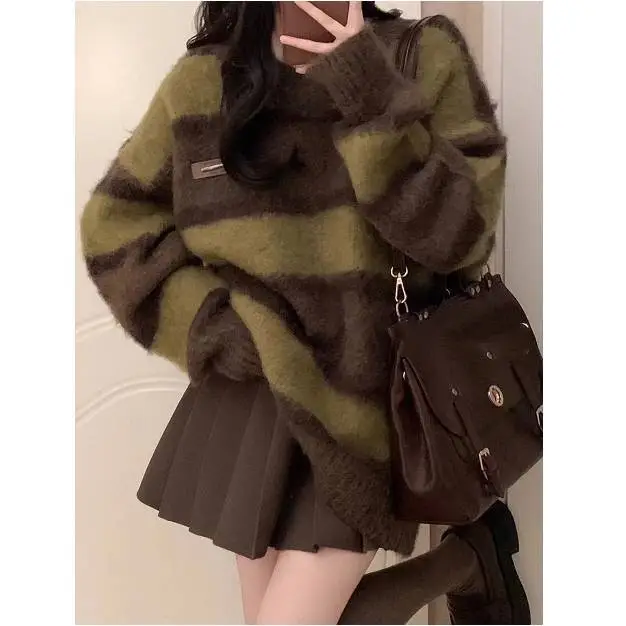 Women's Winter Preppy Style Vintage Stripe Sweater – A Timeless Classic for the Cold Season