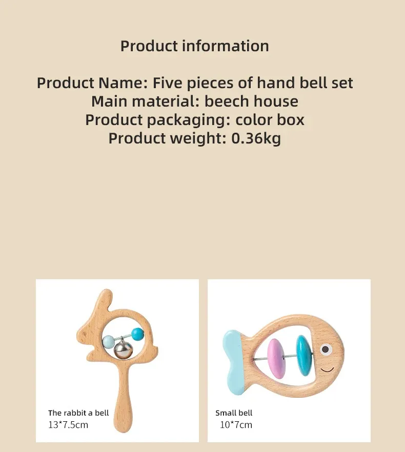 Wooden Baby Colored Five Piece Toy Set