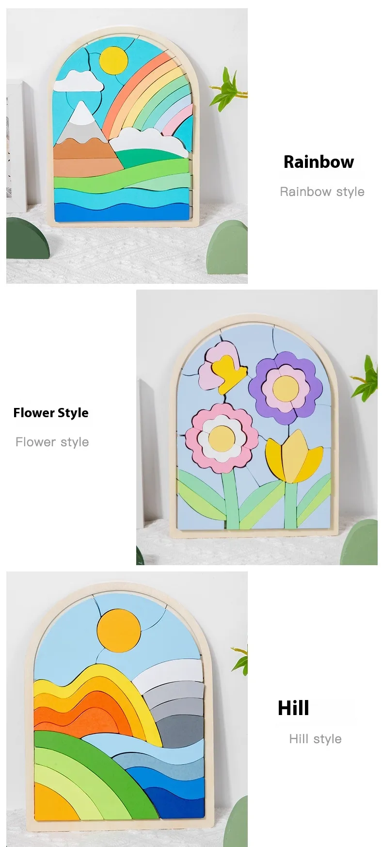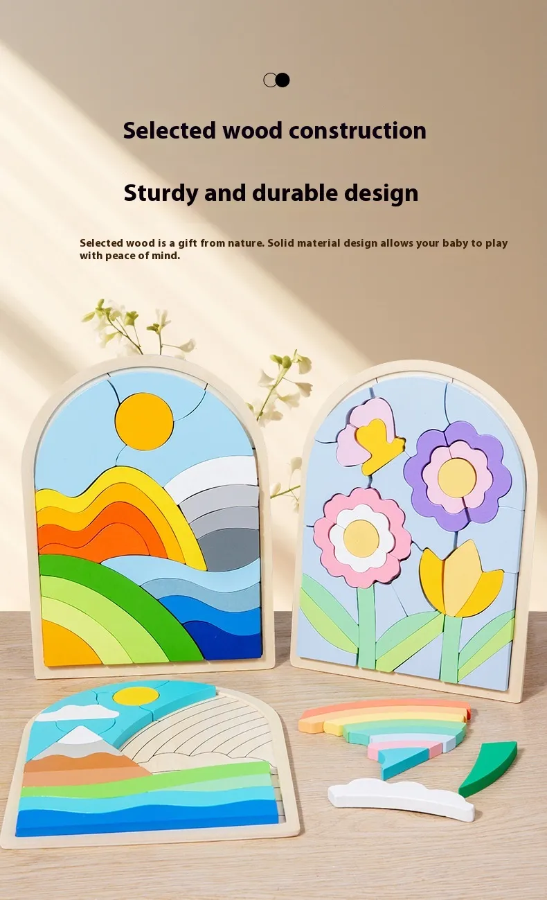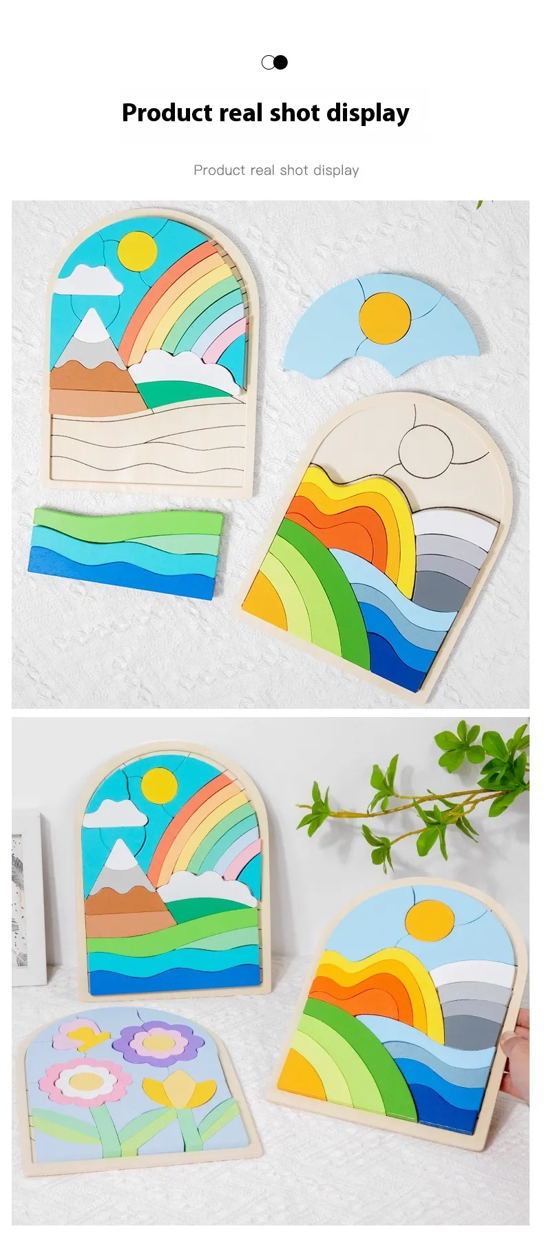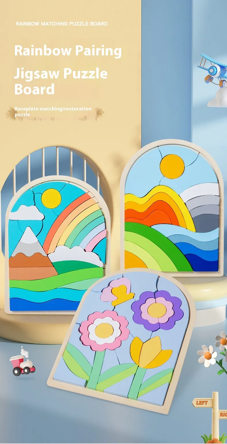 Wooden Children's Cartoon 3D Rainbow Puzzle