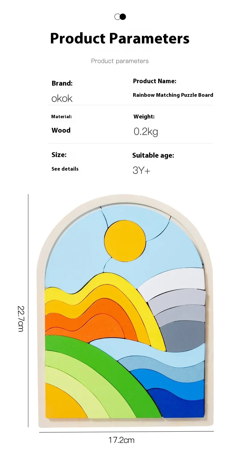The Wooden Children's Cartoon 3D Rainbow Puzzle is an engaging and educational toy designed to stimulate young minds. This puzzle features vibrant, cartoon-themed pieces that form a three-dimensional rainbow structure, combining play with learning. Ideal for children aged 3 and up, it promotes cognitive development, fine motor skills, and an understanding of colors and shapes.
