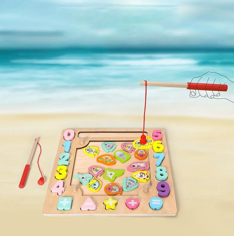 Wooden Children's Multifunctional Fishing Beads Toy