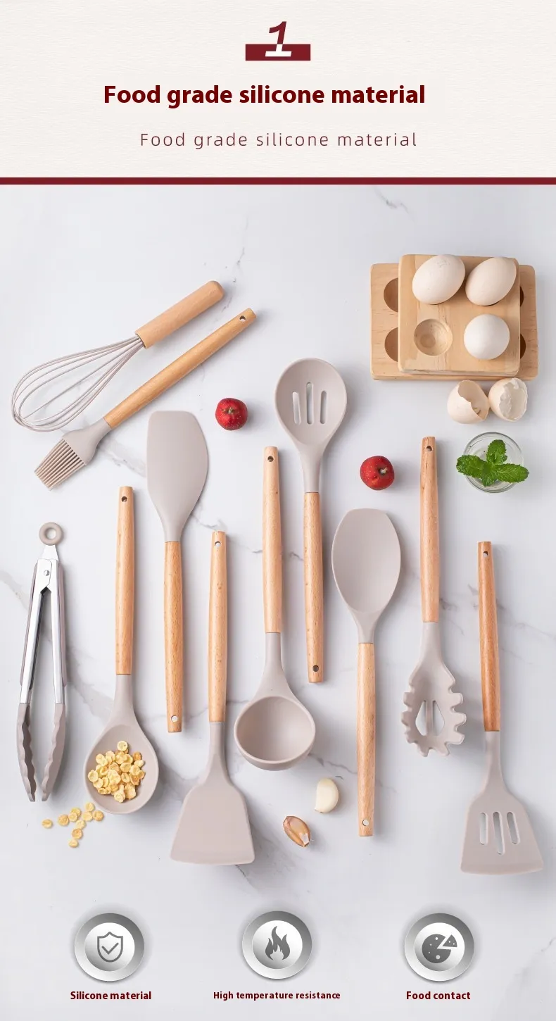 Wooden Handle Silicone Kitchenware Cooking Spatula Set – Durable and Stylish for Your Kitchen