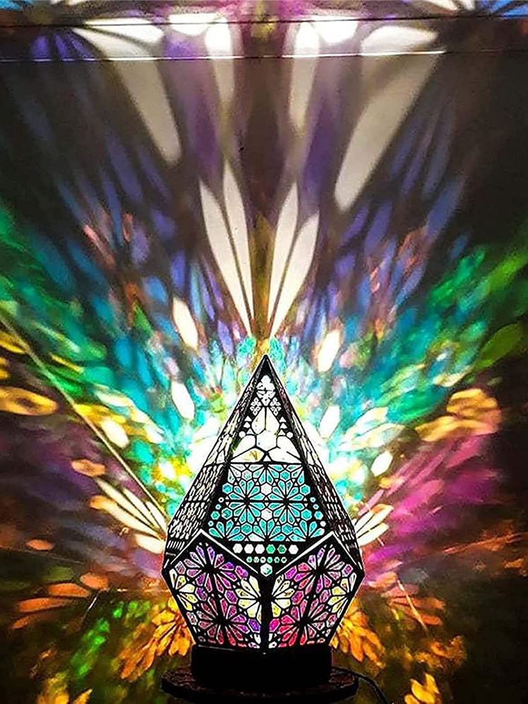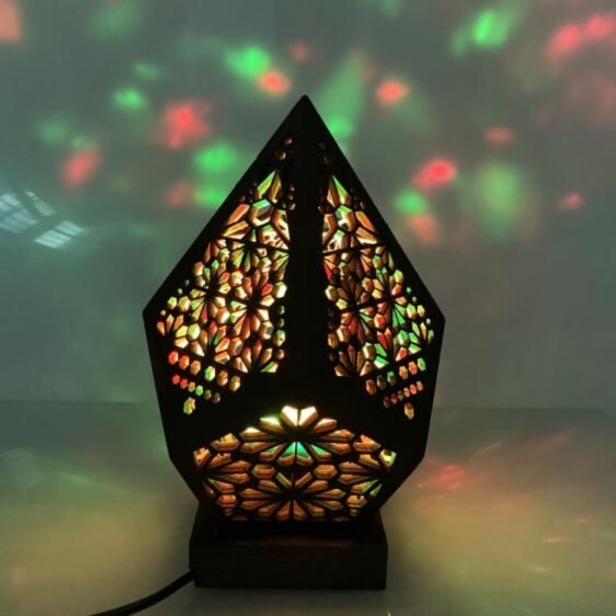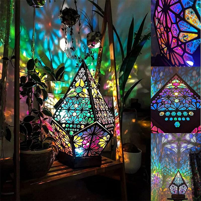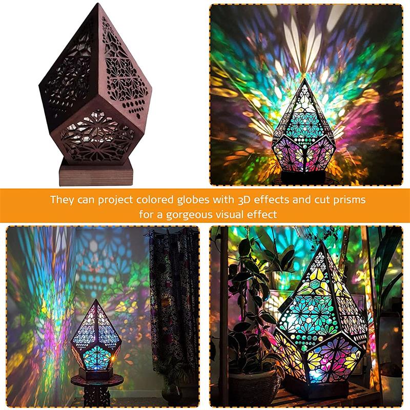 Create a magical atmosphere with our Wooden Hollow LED Projection Night Lamp. This Bohemian-inspired, colorful projector desk lamp is perfect for home decor and holiday lighting.