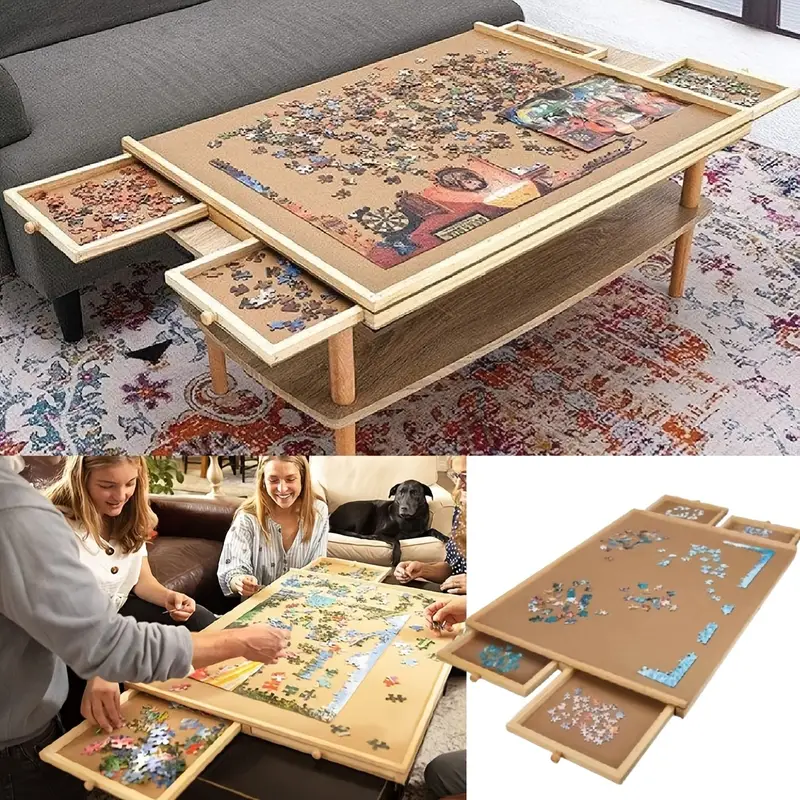 Wooden Jigsaw Puzzle Table with 4 Drawers