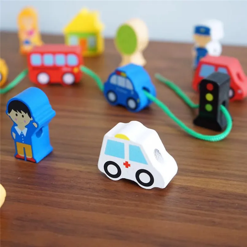 Wooden DIY City String Rope Toy For Children Educational Wear Beads Games Colorful Wood Building Block Set Montessori Toys Gifts
