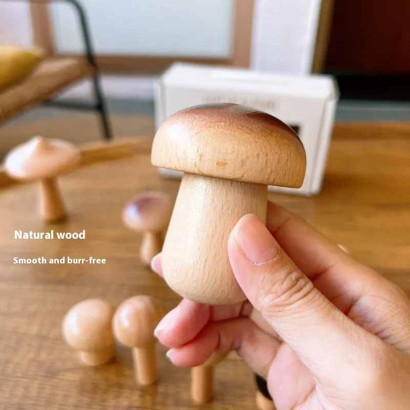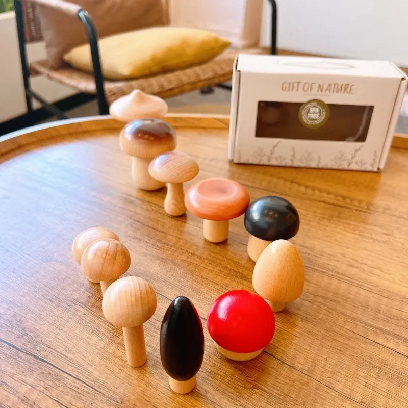 Wooden Mushroom Shape Pieces: Features mushroom-shaped blocks that can be stacked in various ways, encouraging imaginative