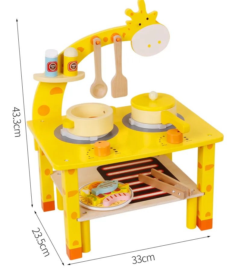Wooden Playhouse Giraffe Kitchen BBQ Set