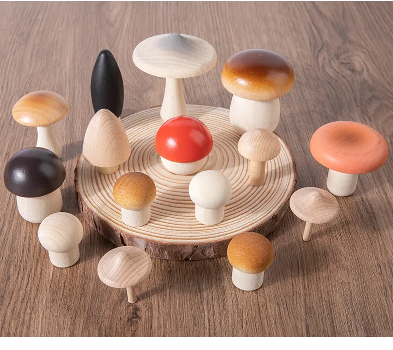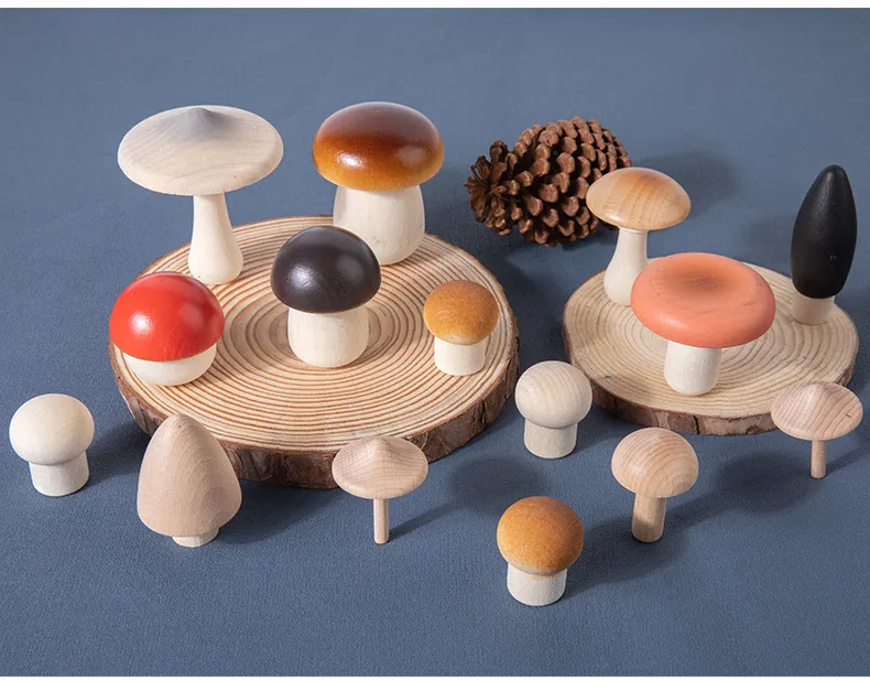 nature while developing essential cognitive and motor skills. This beautifully crafted toy set features colorful wooden mushrooms, designed