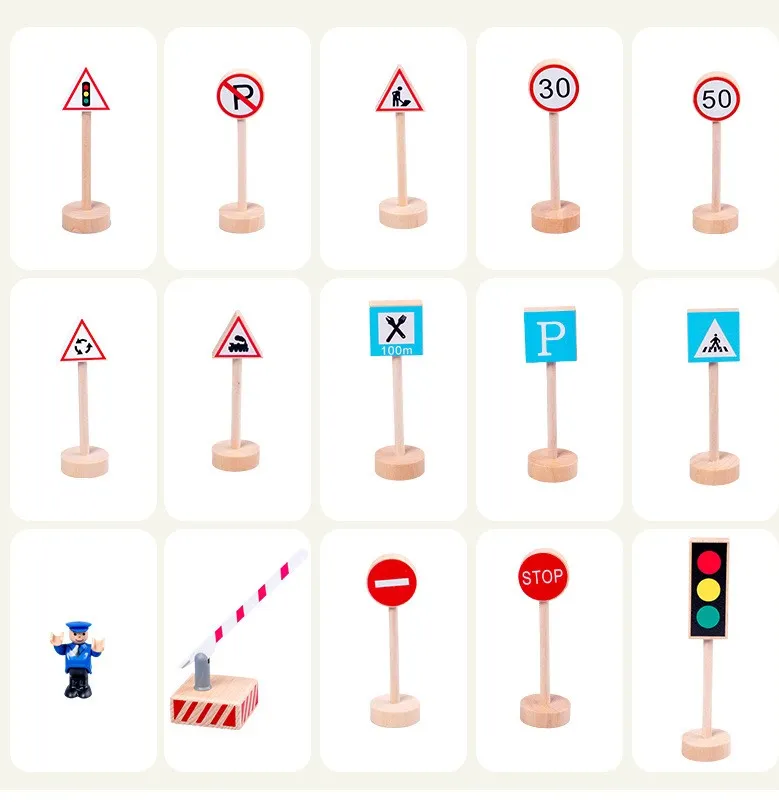These Wooden Street Traffic Signs Toys are perfect for both solo play and group play. Children can play independently, creating their own road systems and traffic scenarios, or they can play with friends and family members to recreate traffic scenes and role-play as drivers, pedestrians, and traffic officers.