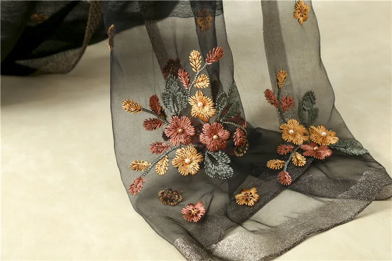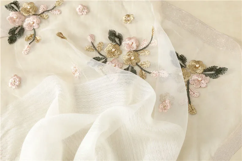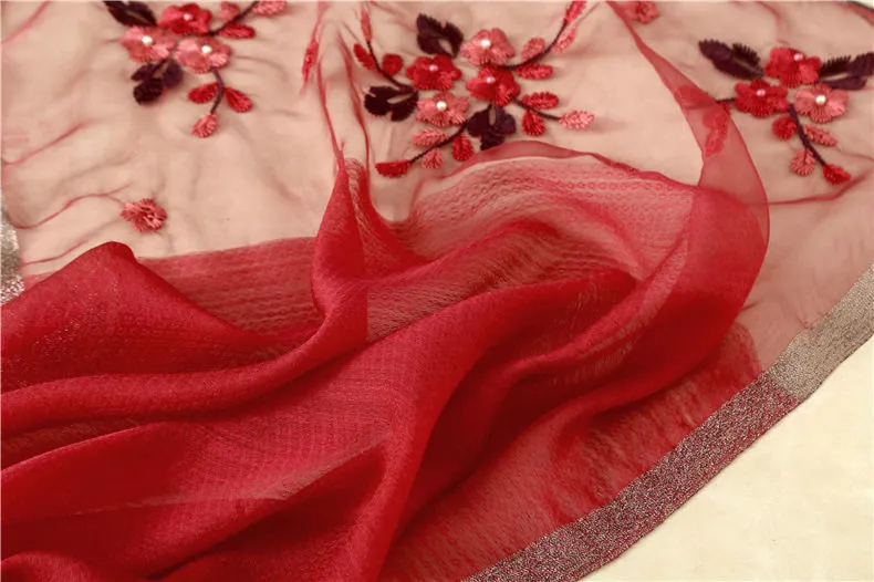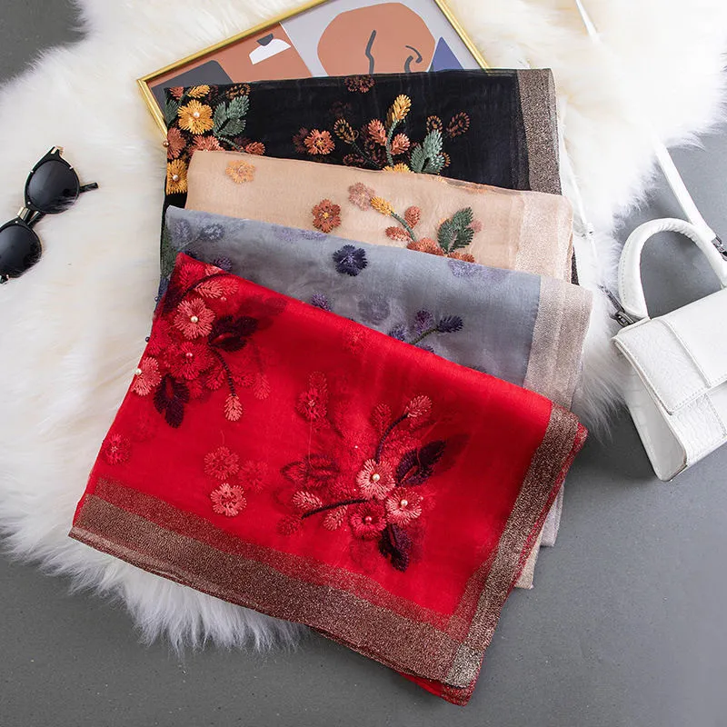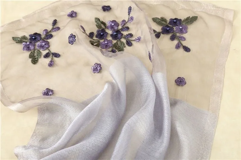 Ideal for fall and winter, this embroidered scarf makes a thoughtful gift for loved ones or a luxurious treat for yourself. Whether worn for warmth or as a stylish accent piece, this wool scarf with begonia embroidery will elevate any look with its elegance and grace.