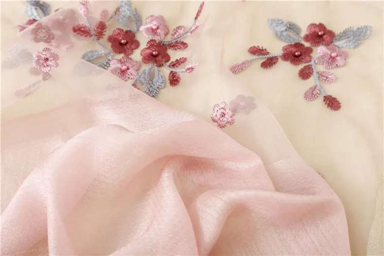 Wool Embroidery Begonia Scarf Long