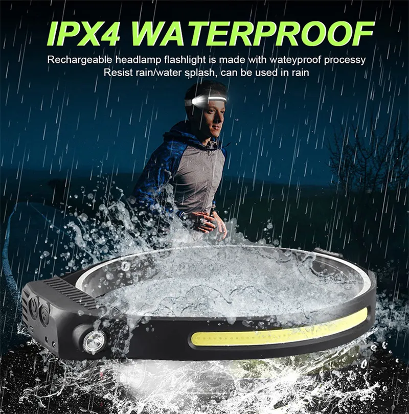 1. Full view ultra-light induction headlamp: far and near dual light comfortable Wearingtypebe-c fast charging.