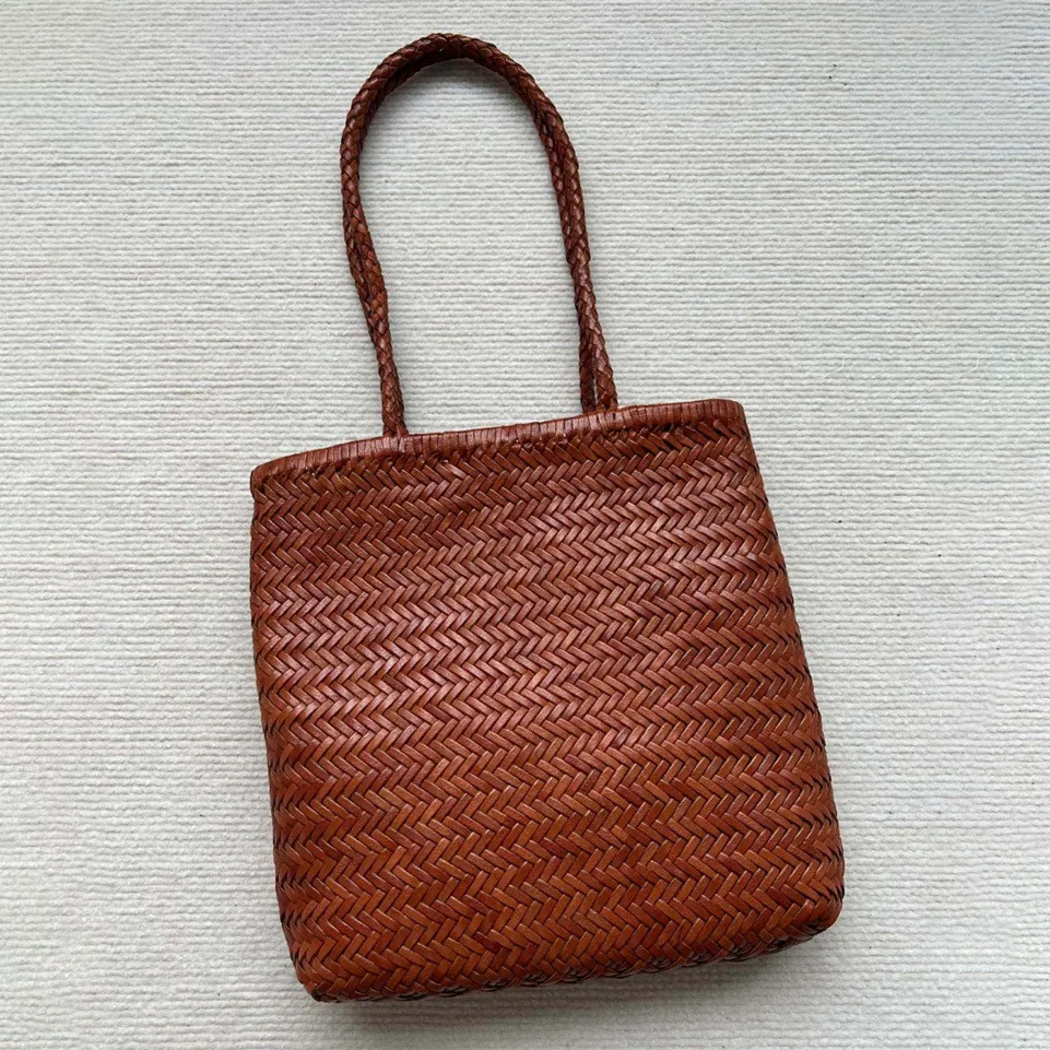 Woven Tote Vintage Top Layer Cowhide Handmade Shoulder Bag
