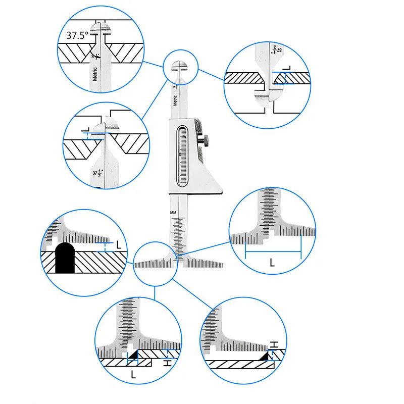 Despite its robust construction, the ruler is compact and portable, making it easy to carry around in toolkits or pockets. Its lightweight design ensures that users can conveniently transport it between welding sites, providing a handy solution for on-the-go inspection. This portability makes it ideal for welders and inspectors working on large structures or in different locations.