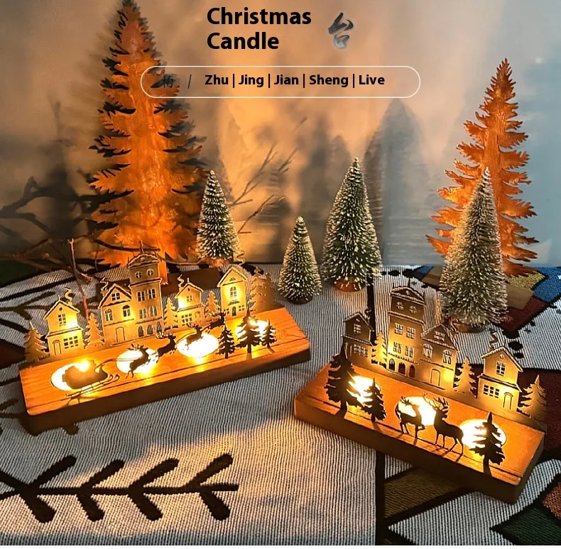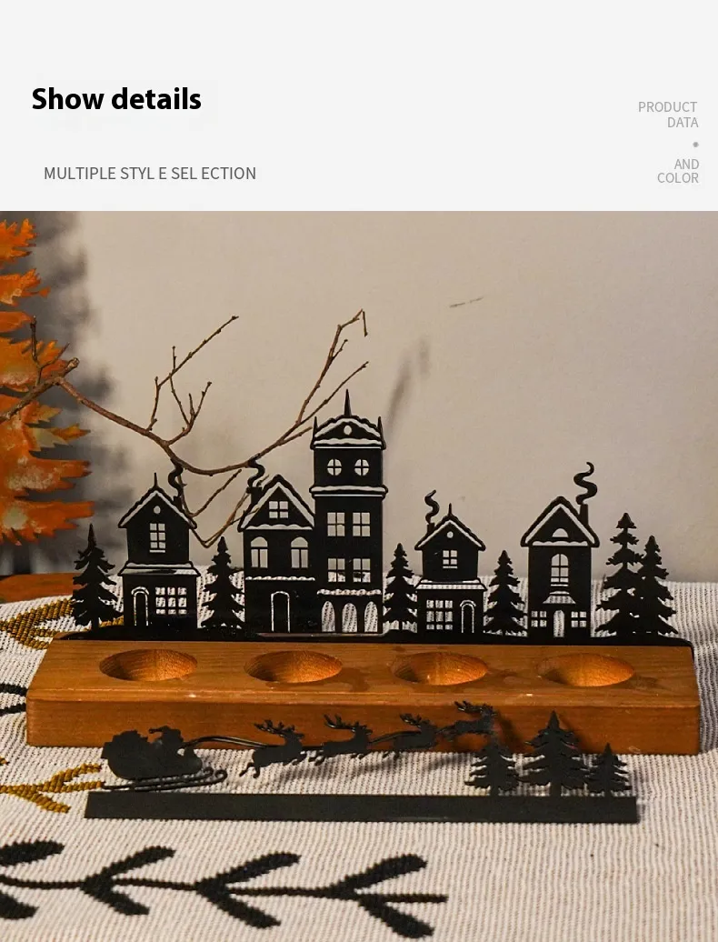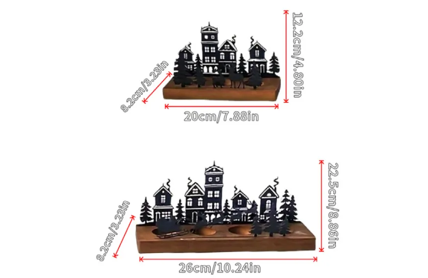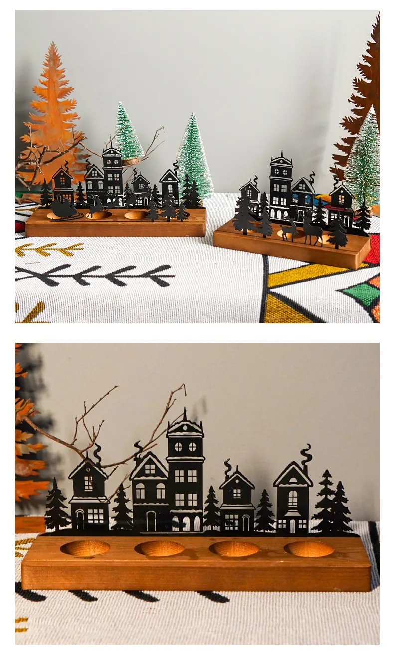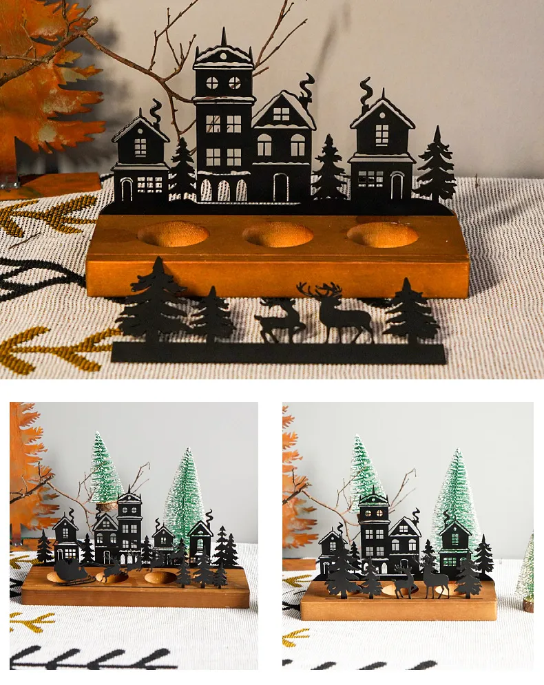 Wrought Iron Christmas Tree Candle Stick Wooden Base Candle Holder
