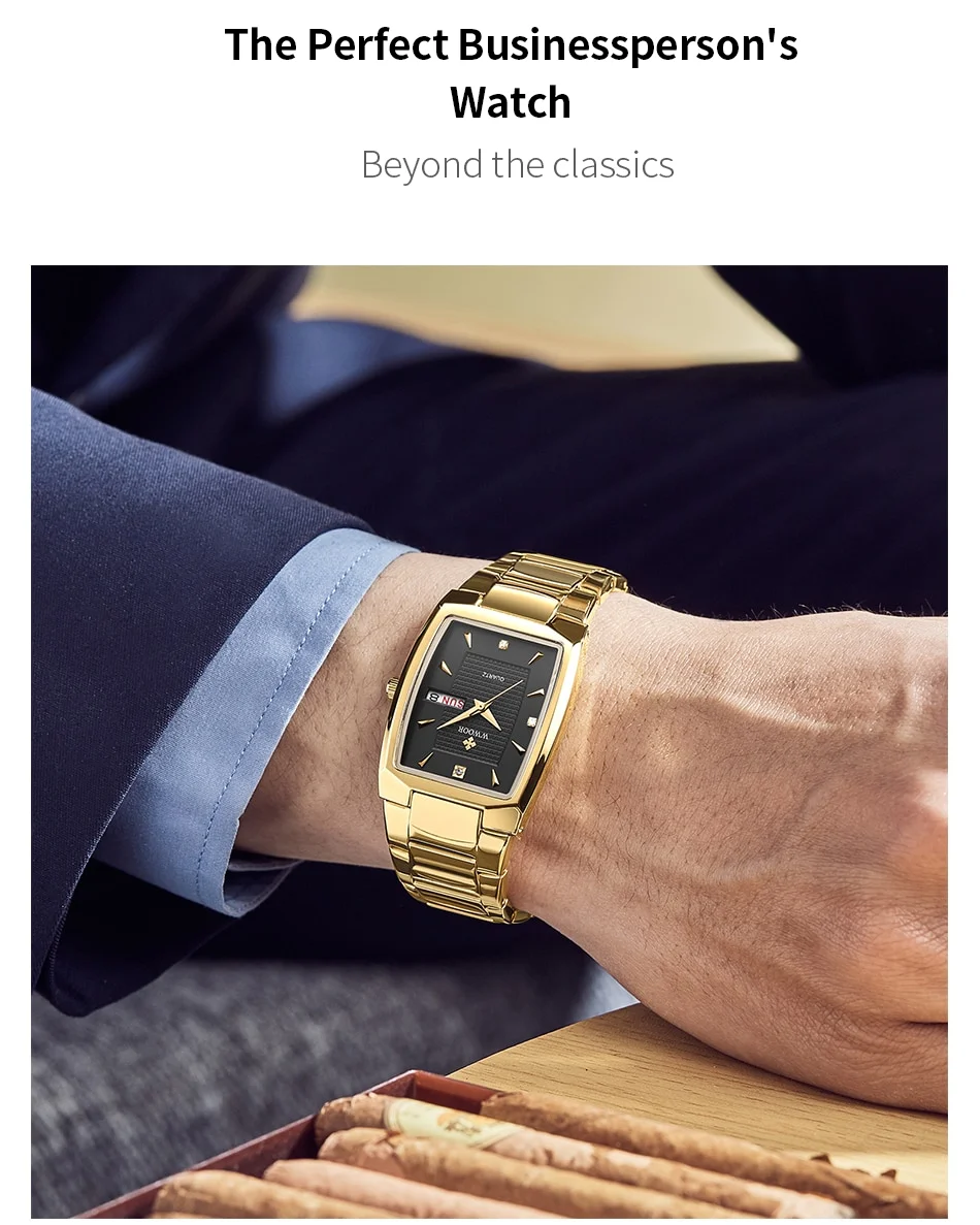 - Business and Work Attire: The elegant gold finish and square design make this watch suitable for business and office wear, adding a sophisticated touch to work attire.