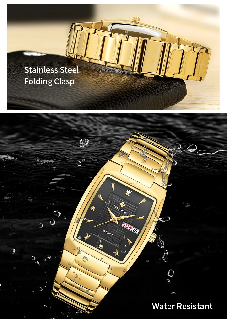 The WWOOR 2024 Men’s Square Watch is a statement piece that combines elegance, durability, and functionality. With its unique square design, gold stainless steel construction, and automatic week and date display, this watch provides a stylish and reliable accessory for any occasion. Whether as a personal accessory or a thoughtful gift, this watch offers a timeless look that complements a variety of styles and outfits.