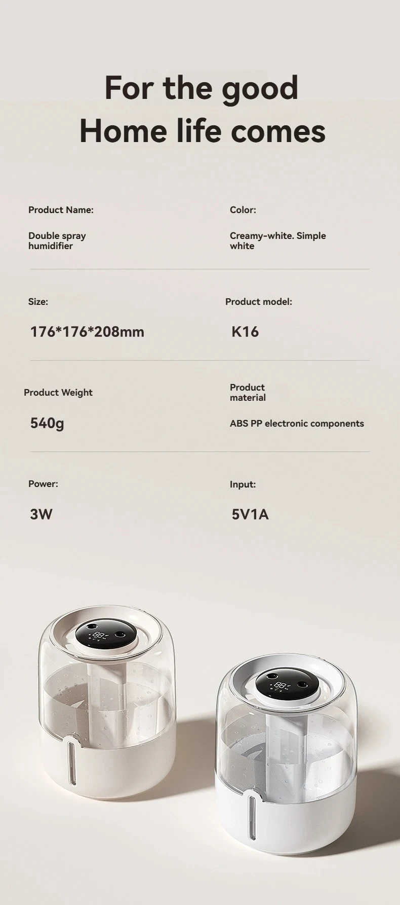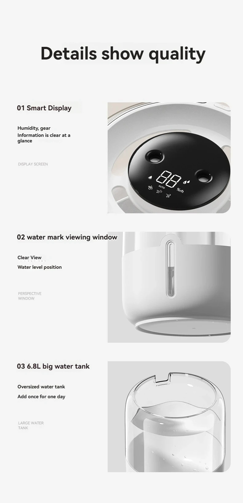 - Display: Digital real-time humidity monitor