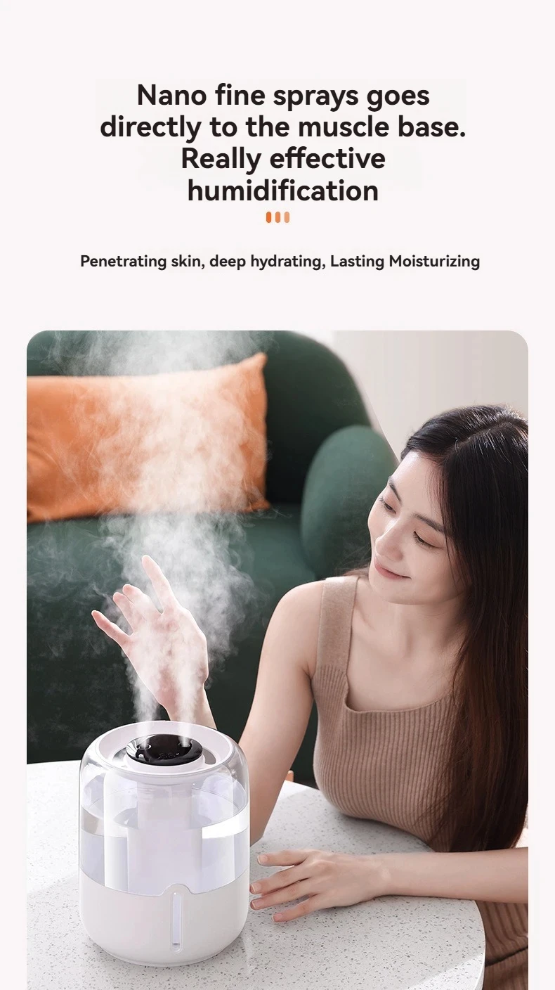 Equipped with dual spray nozzles, the Xiaomi humidifier disperses a fine mist that effectively increases air moisture while reducing dryness, ensuring optimal comfort for you and your family.