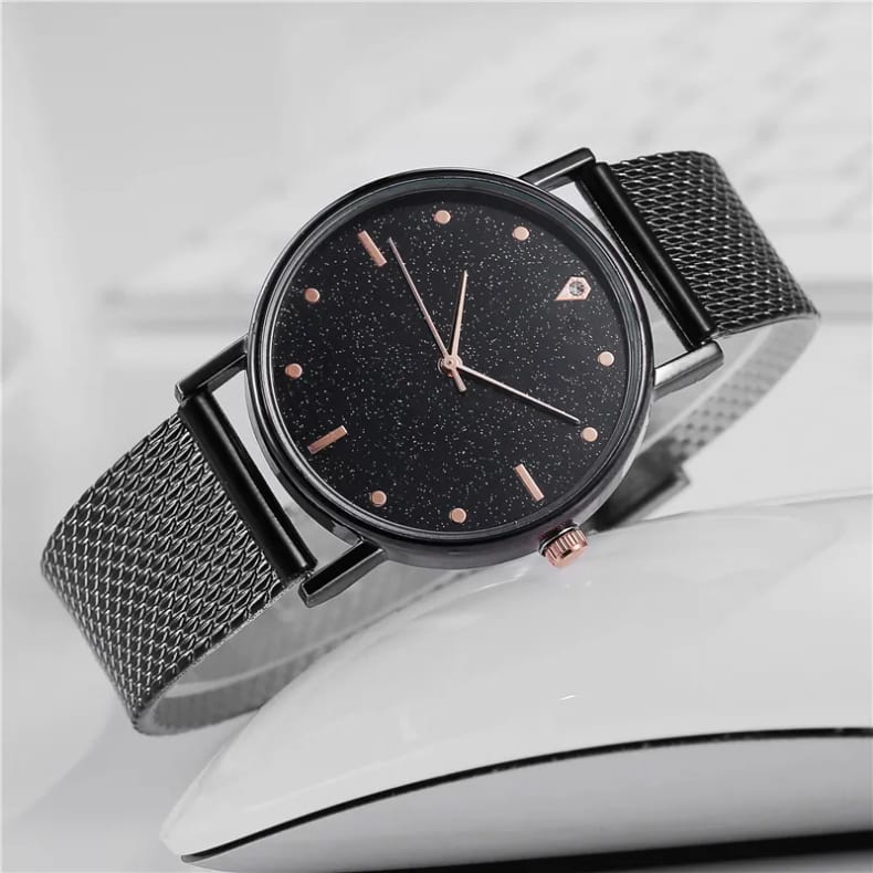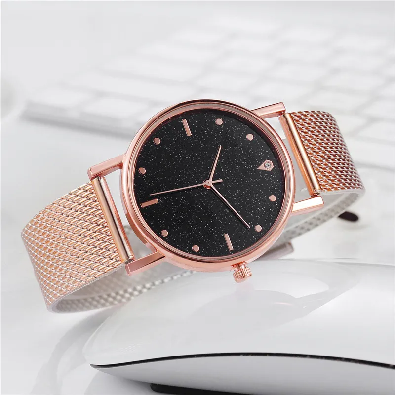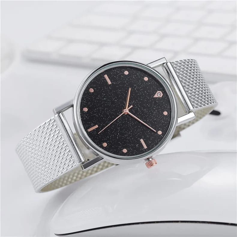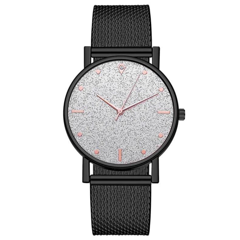 To cater to diverse preferences, the Xingkong Women's Silicone Mesh Watch is available in multiple colors, including:- Black