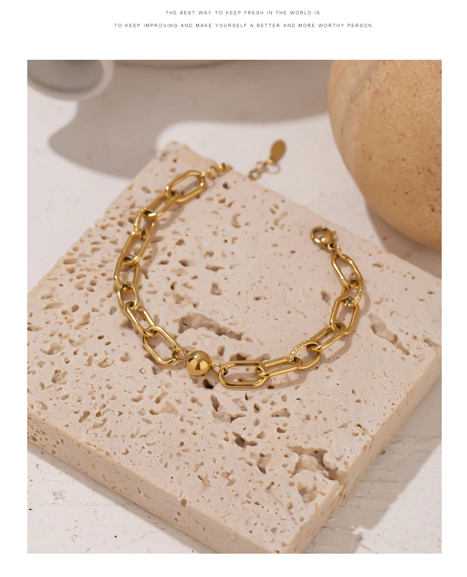 Upgrade your accessory game with the Yhpup Stainless Steel Golden Bracelet, a stunning piece designed to elevate your style with a modern, geometric touch. Crafted with high-quality stainless steel and finished with a luxurious 14K gold plating, this bracelet combines elegance and durability. Its charm-style design and unique metal texture make it a must-have addition to your bijoux accessories collection.