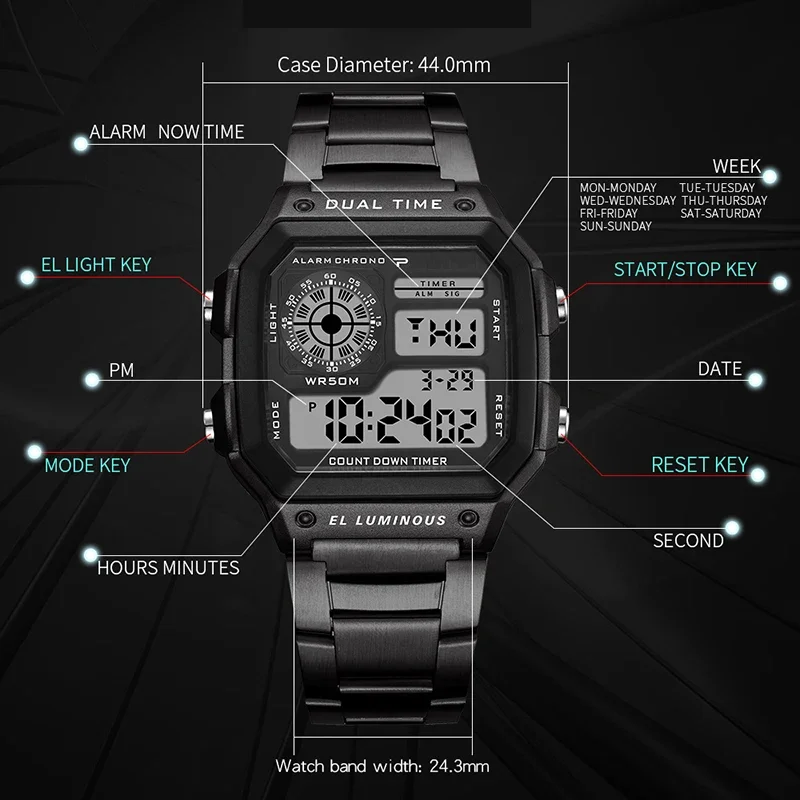 The YIKAZE Digital Watch is a perfect blend of contemporary design, advanced technology, and rugged durability. Featuring a stainless steel strap, LED electronic display, and a variety of sports-friendly features, this watch is built for versatility and performance. Whether as a personal accessory or a thoughtful gift, the YIKAZE Digital Watch stands out as a symbol of style and functionality.