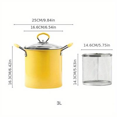 Product name: Multifunctional frying pot Capacity: 3L Single gross weight: 1.2kg Material: fine iron, tempered glass Size: 18*16.5cm Uses: French fries, chicken legs, ham, sausage, peanut chicken wings, etc.
