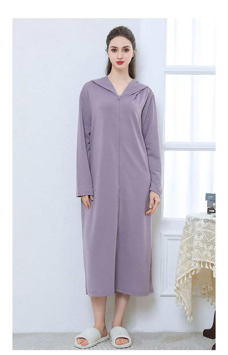 Embrace cozy comfort and style with the Zipper Bathrobe Couple Hooded Nightgown Thin Pajamas. Perfect for couples who want to share warmth and comfort, this matching set features soft, breathable fabric that is ideal for lounging, relaxing at home, or unwinding before bed. The unique zipper design makes it easy to slip into, while the hooded feature adds extra warmth and comfort, making it perfect for cool evenings or mornings.