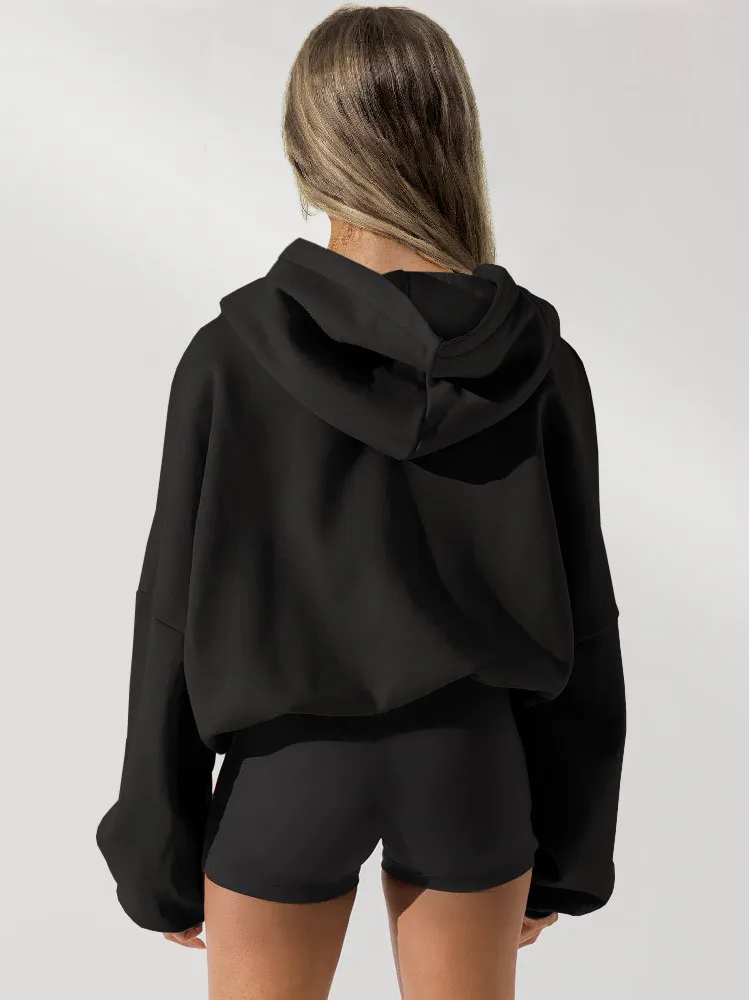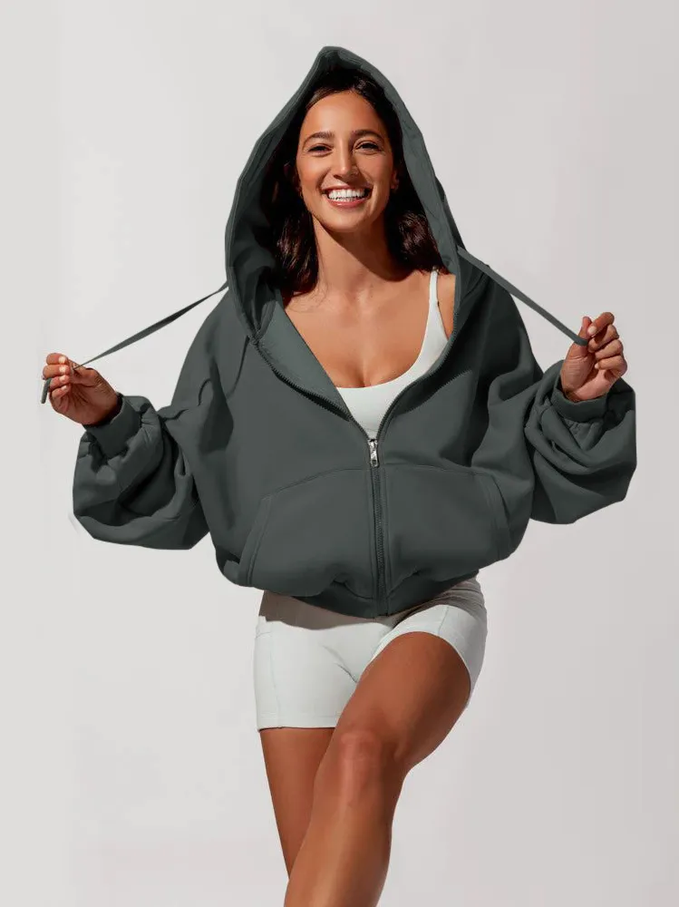 Zipper Hoodies Sports Jacket Fashion Loose Hooded Sweatshirt Casual Solid Women's Clothing