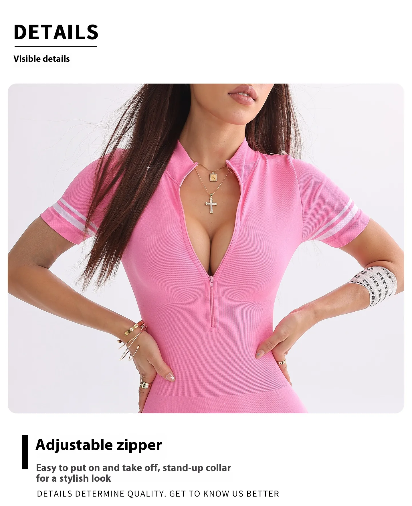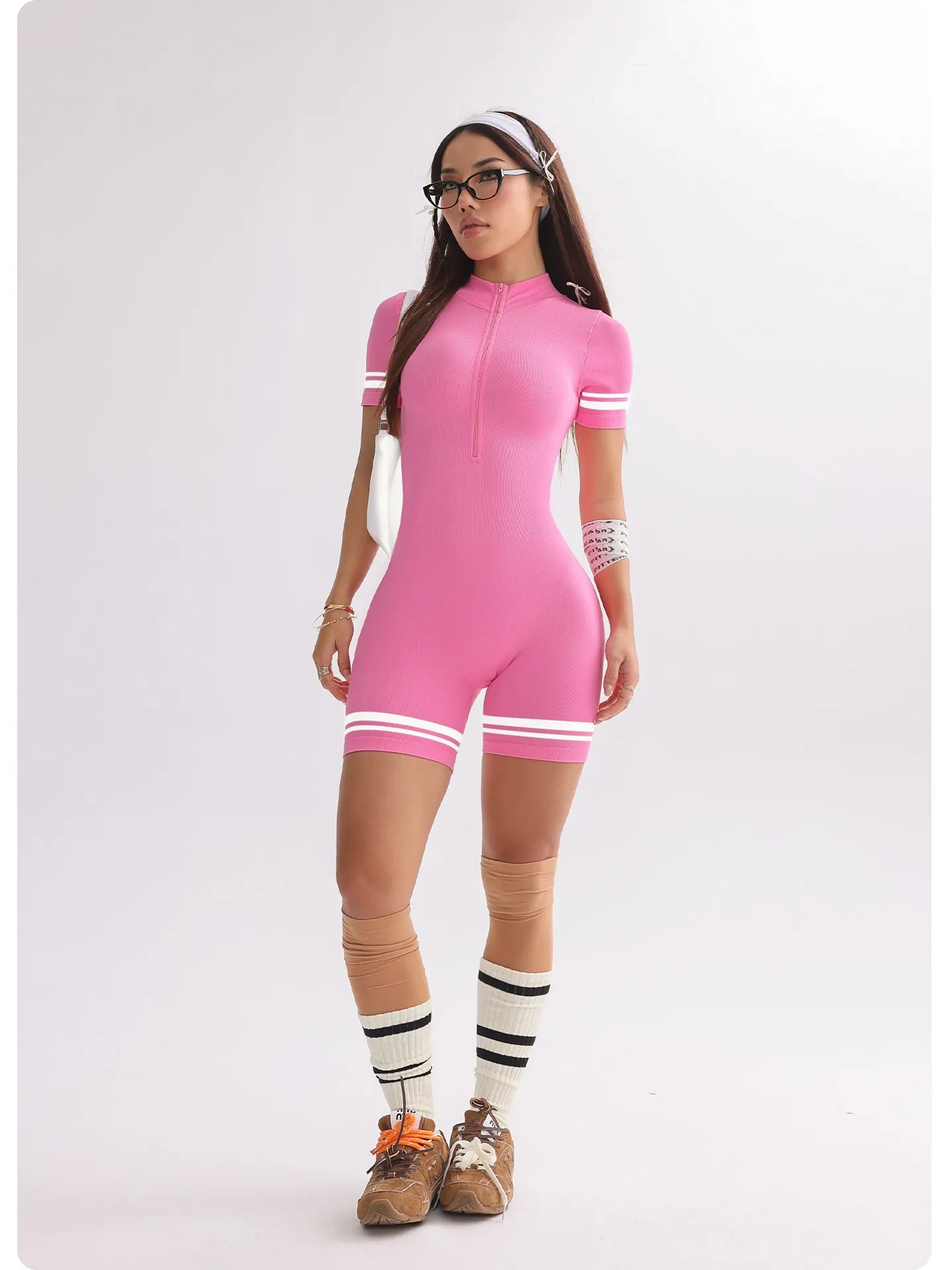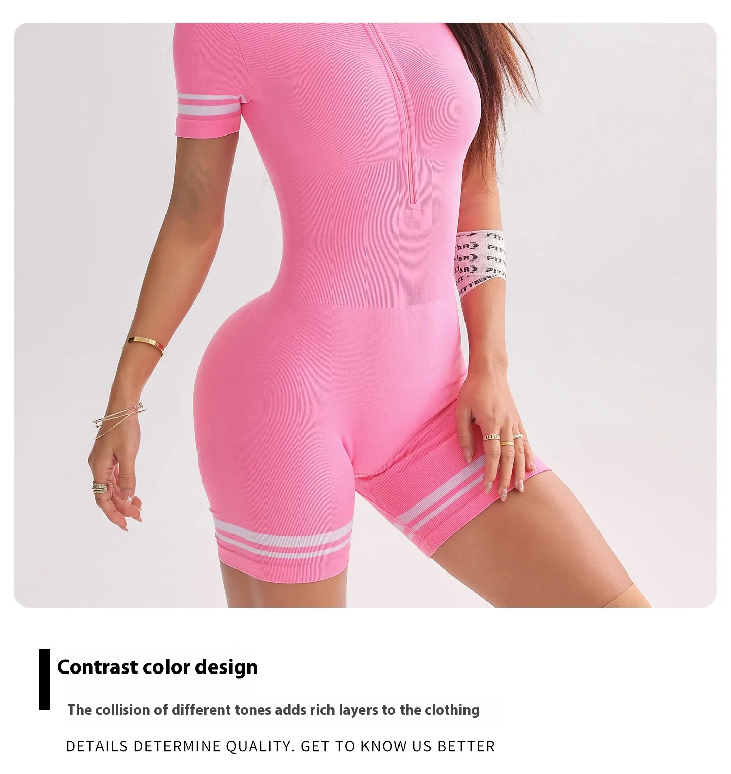 The Zipper Short Sleeve One-piece Contrast Color Shorts is the perfect addition to any woman’s wardrobe. Offering a stylish, comfortable, and practical solution for casual wear, this outfit combines trendy design with high functionality. The zipper front and contrast color elements add a modern touch, while the breathable fabric ensures comfort for all-day wear. Whether you're looking for an easy outfit for a busy day or something versatile for various casual occasions, this one-piece outfit offers everything you need in a chic, fashionable design.