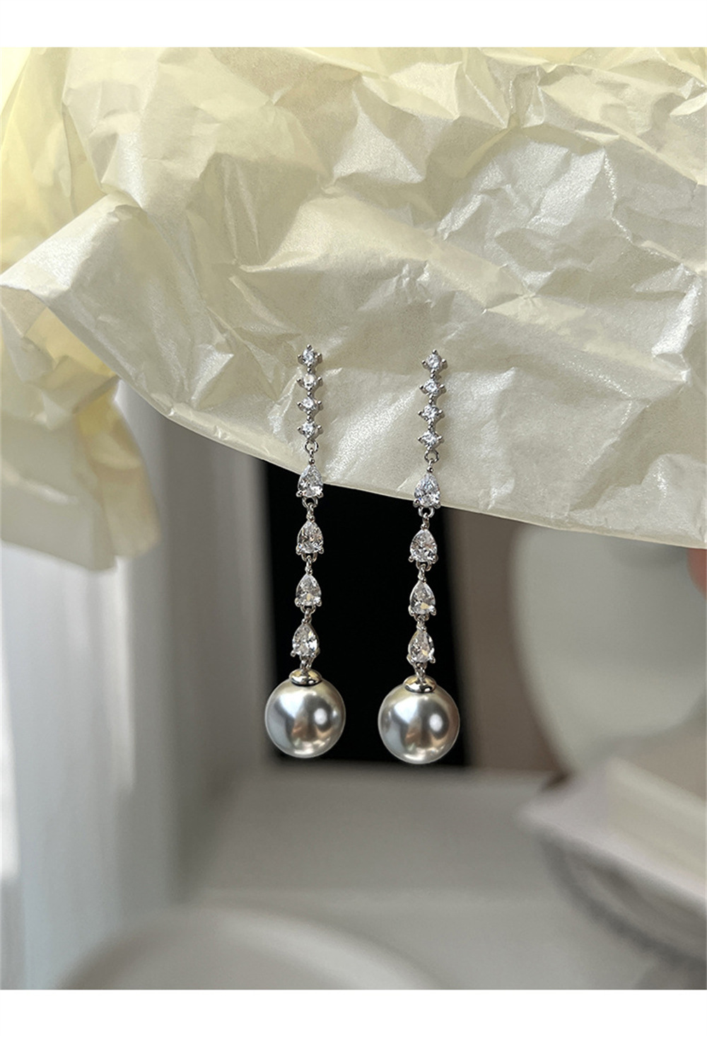 Zircon Long Pearl Earrings Women's Retro