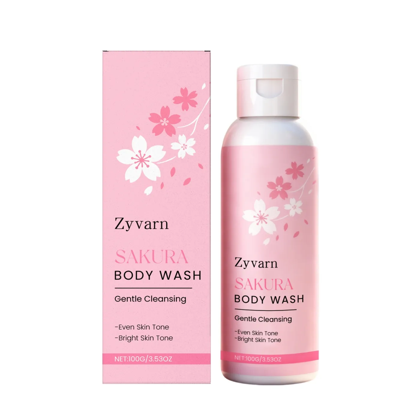 sakura body wash, brightening body wash, even skin tone, gentle body wash, Zyvarn body wash, moisturizing body wash, floral body wash, skin brightening wash